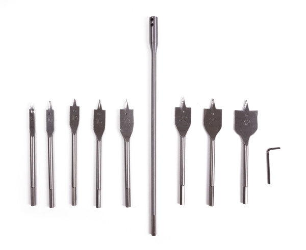 Flat wood bit set 10 pieces + extension