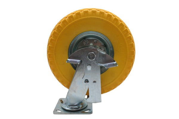 • Swivel castor + PU tyre 10″ + brake 3.00-4″